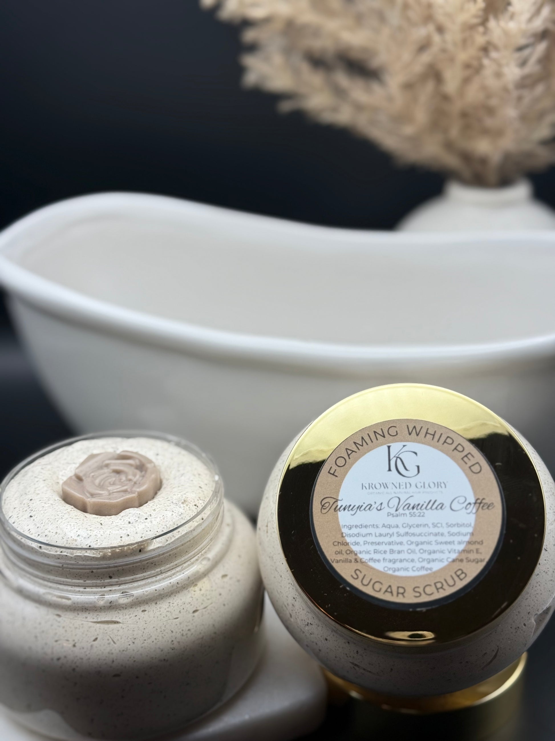 Wake Up & Glow with Our Organic Foaming Whipped Vanilla Coffee Sugar Scrub!