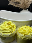 Ingredients: Distilled water, Organic Mango Butter, Organic Aloe Vera Juice, Organic Turmeric infused Jojoba Oil, Organic Rosehip Oil, Organic Turmeric Powder, Organic Colloidal Oats, Organic Manuka Honey, Organic emulsifying wax NF, Glycerin, Preservative, Organic Vitamin E & A, Vanilla, Sweet Orange, & Bergamot E.O., Organic Lemon Peel powder, Niacinamide powder, Hyaluronic Acid