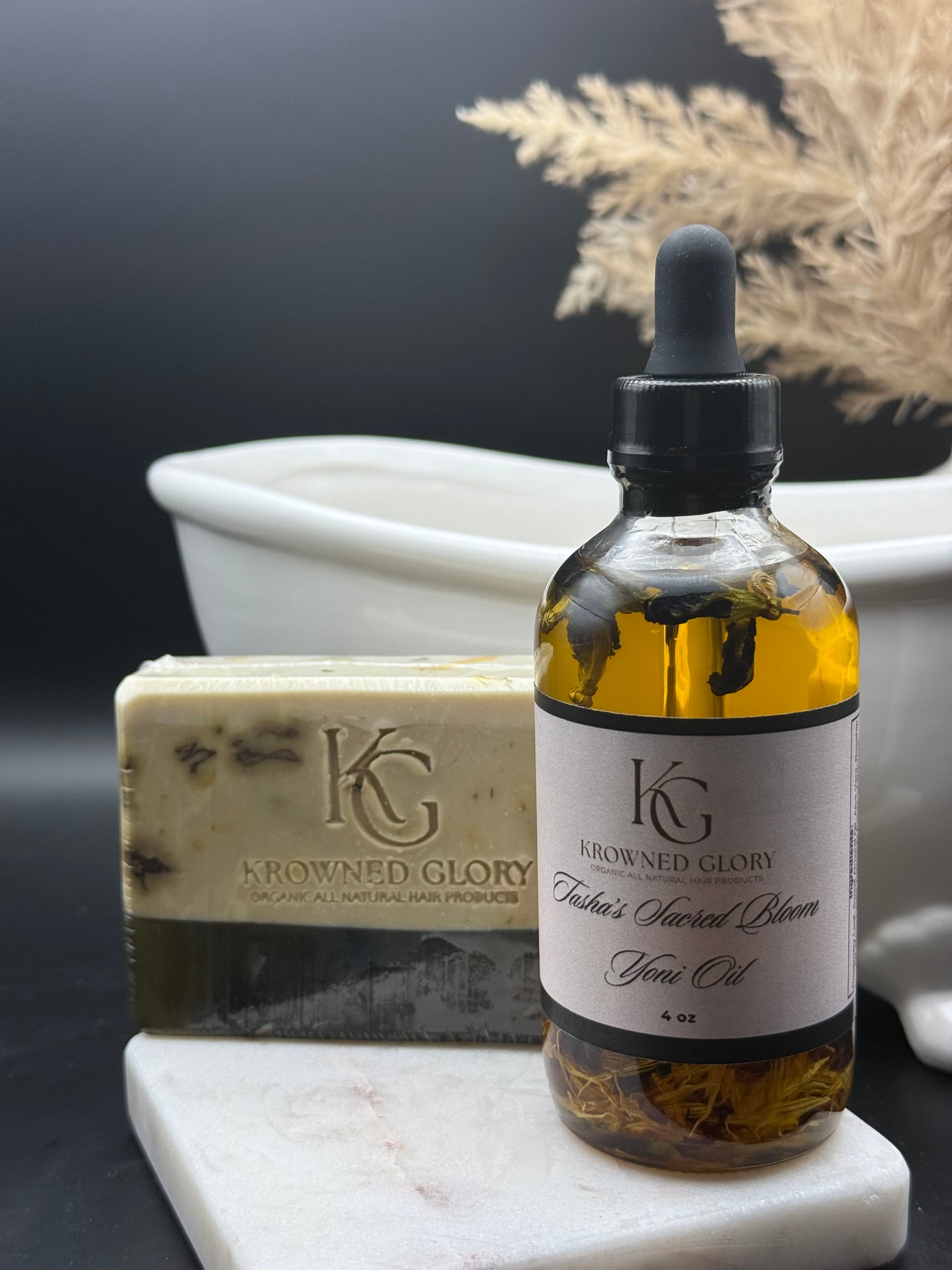 Begin with Keisha’s Kleen Kitty Yoni Soap, a gentle, pH-conscious herbal cleanser infused with soothing botanicals that freshen, calm, and protect your intimate area without stripping away natural moisture. Then, indulge in Tasha’s Sacred Bloom Yoni Oil, a sensually infused elixir of flowers, probiotics, and plant oils that hydrate, and balance your womb space.